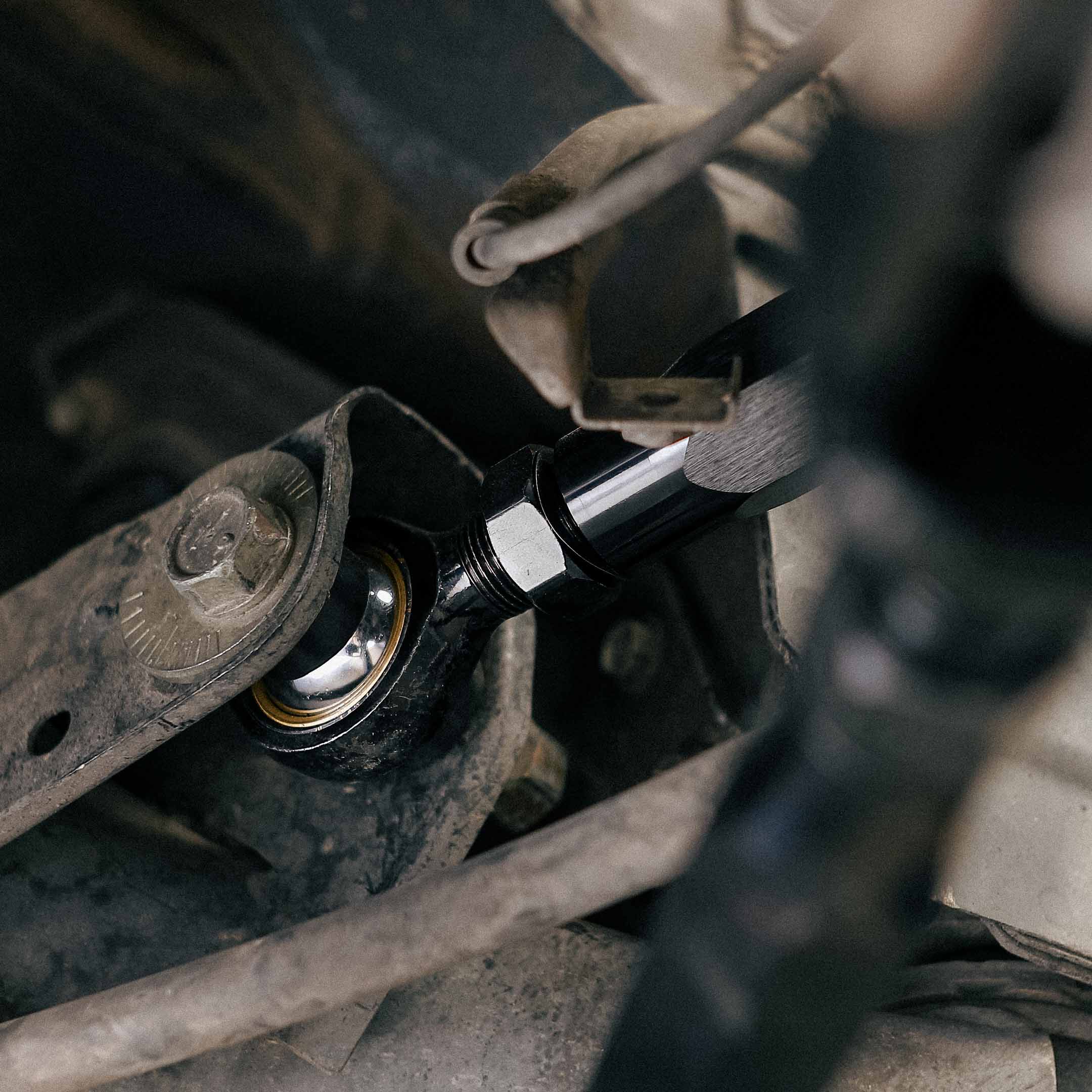 - 高品質の5/8インチテフロンライニングピローボールロッドエンドを採用し、工場出荷時のゴムブッシュに見られるフレックスを排除し、よりダイレクトで予測可能な感触を提供します。
